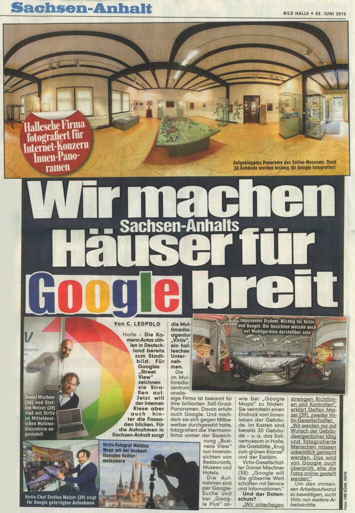 Wir machen Sachsen-Anhalts Häuser für Google breit Beitrags-Autor:Virtiv Beitrag veröffentlicht:3. Juni 2015 Beitrags-Kategorie:Uncategorized Beitrags-Kommentare:0 Kommentare Wir machen Sachsen-Anhalts Häuser für Google breit Geschrieben von Steffen Melzer am 03. Juni, 2015 Bild Zeitung vom 03.06.2015 Das könnte dir auch gefallen Auf dem Weg in künstliche Welten 21. März 2016 3D-Showroom 16. Mai 2023 Unser Workshop vom 03.12.2013 zum Thema Social Media 3. Dezember 2013 Schreibe einen Kommentar Antwort abbrechenKommentierenGib deinen Namen oder Benutzernamen zum Kommentieren ein Gib deine E-Mail-Adresse zum Kommentieren ein Gib deine Website-URL ein (optional) Meinen Namen, meine E-Mail-Adresse und meine Website in diesem Browser für die nächste Kommentierung speichern.